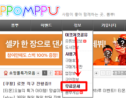 뽐뿌 사이트에 접속을 하시면 상단에 검은 박스에 메뉴가 있습니다.