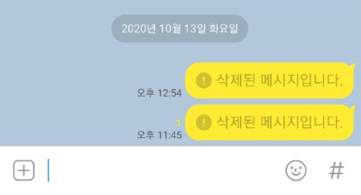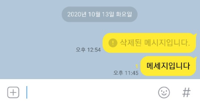▲ 그러면 카카오톡 메세지가 삭제가 됩니다. 또한 상대방의 카카오톡에도 삭제가 되어 있습니다.