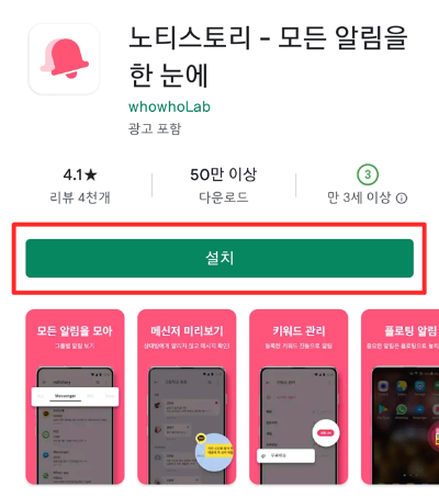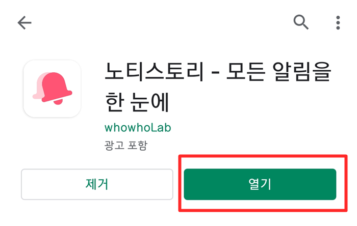 ▲ 노티스토리라고 적으면 <노티스토리 - 모든 알림을 한눈에>라고 맨 처음에 나오는 앱을 클릭해줍니다.