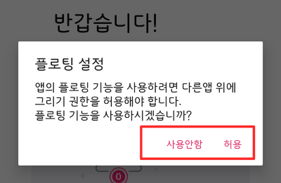 ▲방금 전에 말씀드린 플로팅 설정입니다. 플로팅 기능을 사용하려면 <허용>을 선택해줍니다.