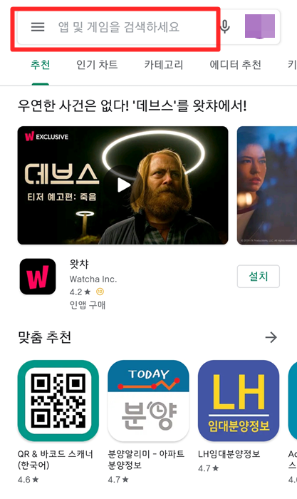 ▲ 노티스토리앱을 다운받기 위해서 플레이스토어에 접속을 합니다. 이제 검색창에 노티스토리라고 적습니다.