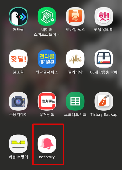 ▲ 스마트폰에 설치된 notistory를 실행시켜줍니다.