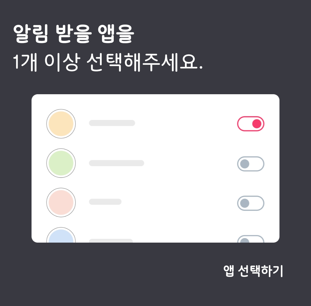 ▲ 알림 받을 앱을 1개 이상 선택해주면 됩니다. 카카오톡 삭제된 메세지 보는법을 알기 위해서는 당연히 카카오톡 앱을 설정해주셔야 합니다.