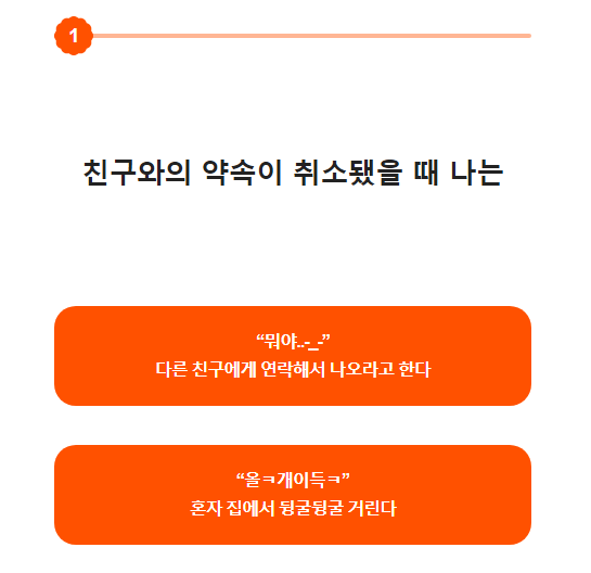 1. 친구와의 약속이 취소됐을 때 나는?