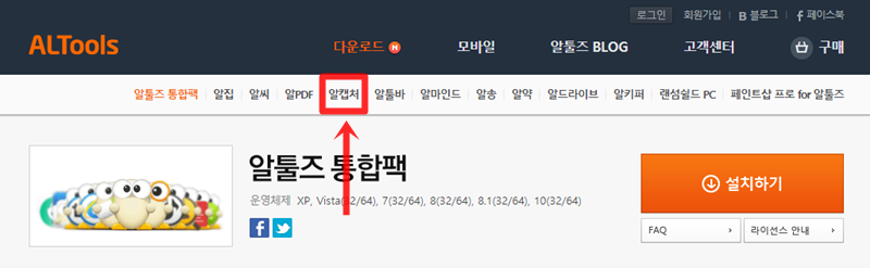 이번에는 압캡쳐 다운로드를 하기 위해서 접속을 했으므로 <알캡쳐>를 클릭합니다.
